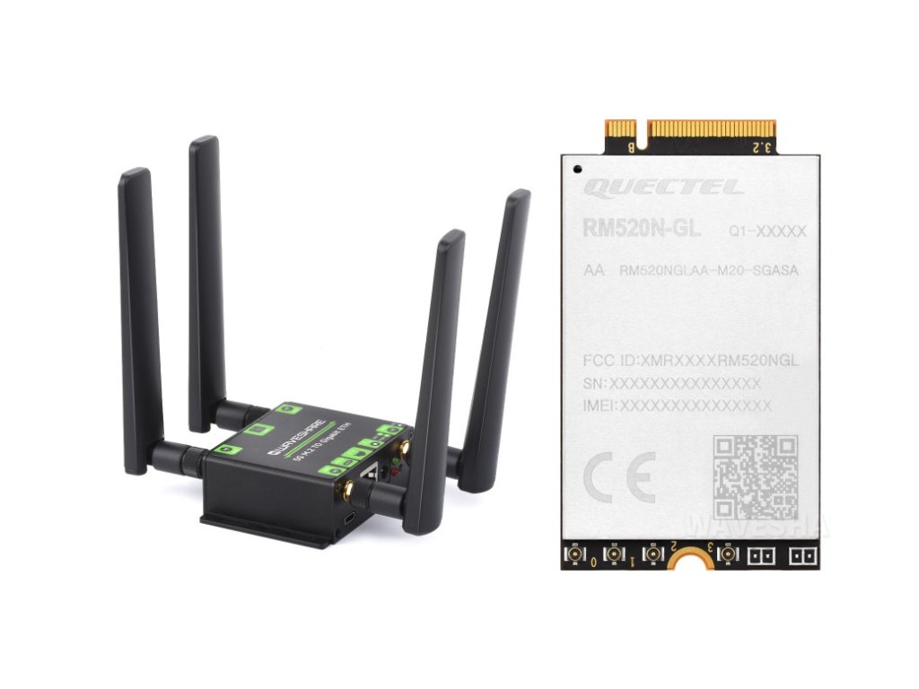 5G M.2 to Gigabit Ethernet Converter, 5G M.2 to USB3.1, Aluminum Alloy Case, Wall-Mount Support, Quad Antennas, With RM520N-GL Module