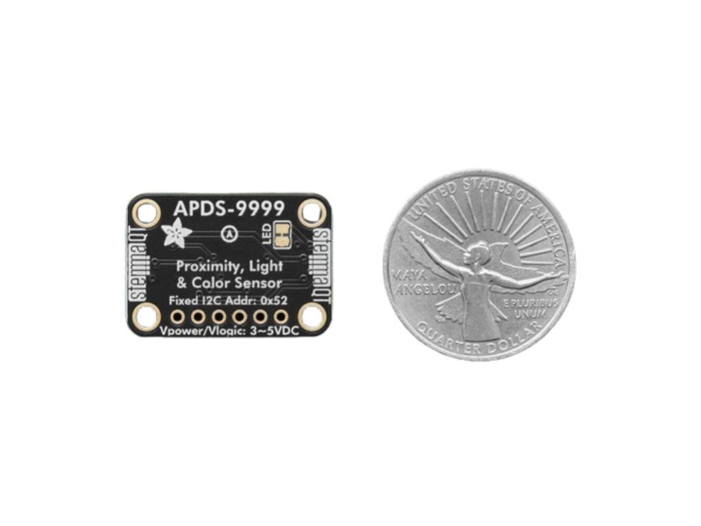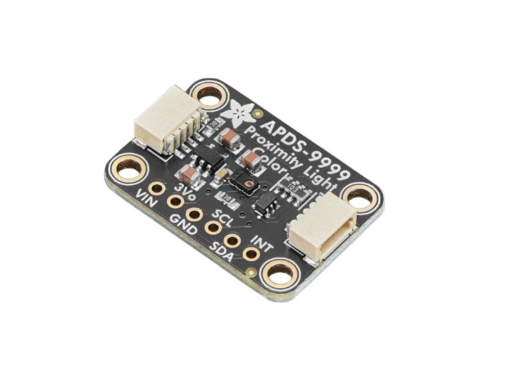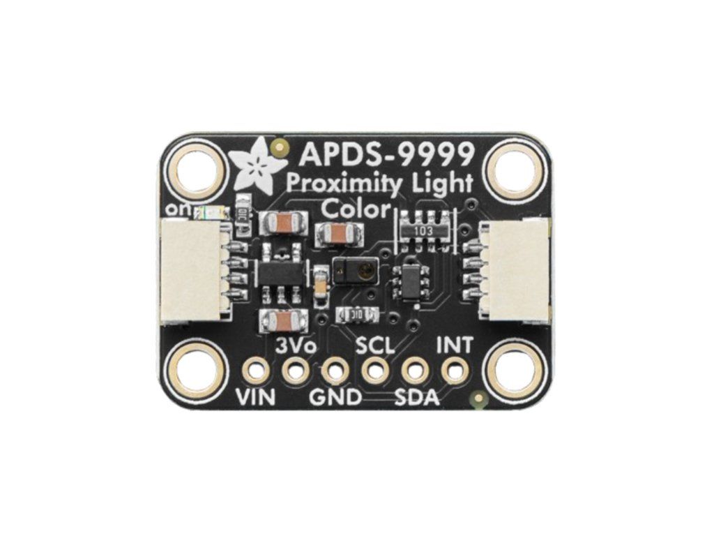If you want a sensor that's a 3-in-1, the Adafruit APDS9999 Proximity, Lux Light, and Color Sensor has RGB color, lux light level as well as infrared proximity all built into one device. When connected to your microcontroller (running our library code), it can detect the amount of red, blue, green, and clear light, as well as how close an object is to the front of the sensor. This device uses an I2C interface, so it's easy to wire up and use.