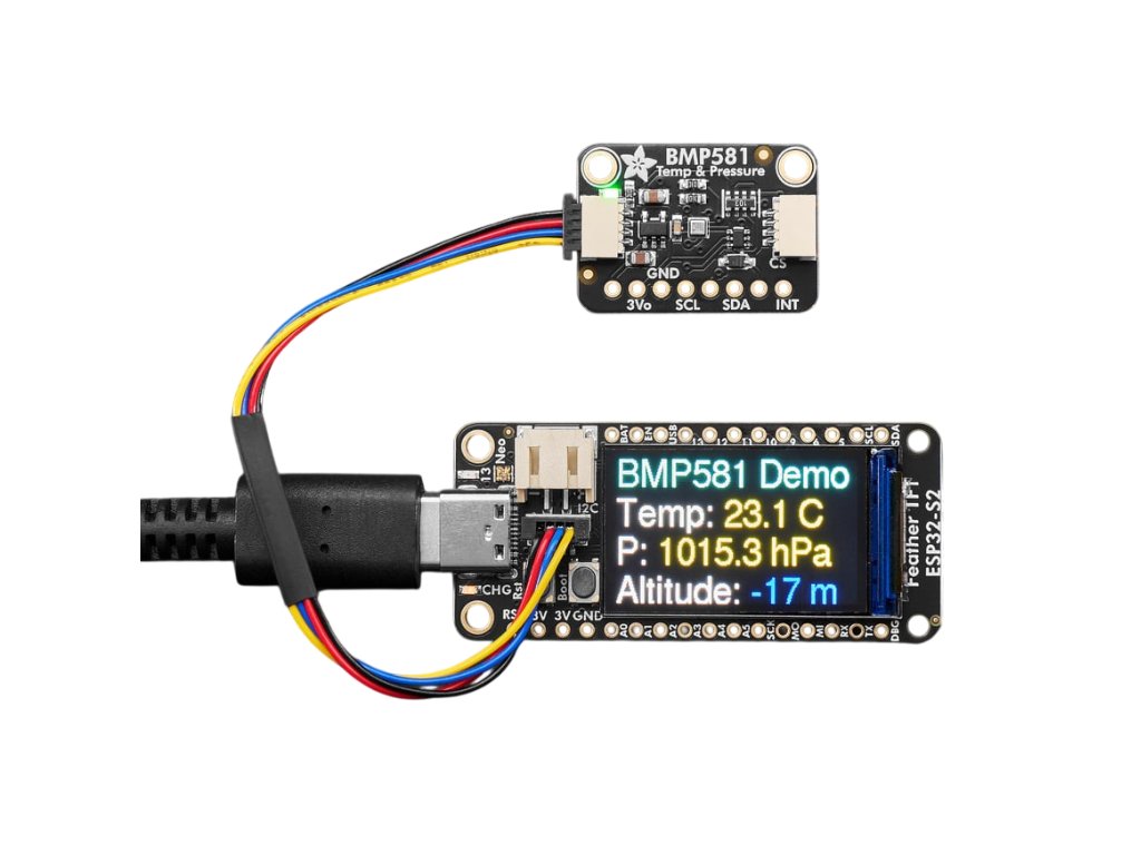The BMP58x is the next-generation of sensors from Bosch and is the upgrade to the BMP2xx and BMP3xx - with a low-altitude noise as low as 1cm (0.08Pa) and the same fast conversion time. And like the previous BMP280, you can use I2C or SPI. For simple easy wiring, go with I2C. If you want to connect a bunch of sensors without worrying about I2C address collisions, go with SPI.