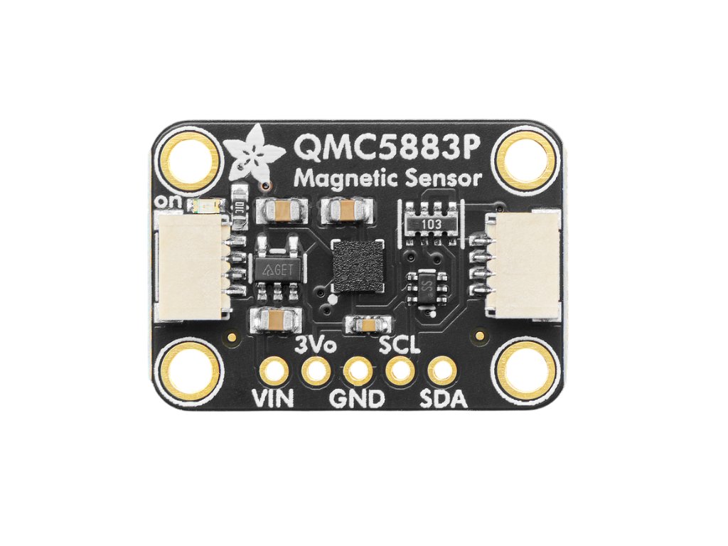 We based this breakout on the QMC5883P, a magnetometer we see used in may Quadcopter and robotic builds. This compact sensor uses I2C to communicate, and it's very easy to use. Simply download our library and connect the SCL pin to your I2C clock pin, and SDA pin to your I2C data pin and upload our test program to read out magnetic field data.