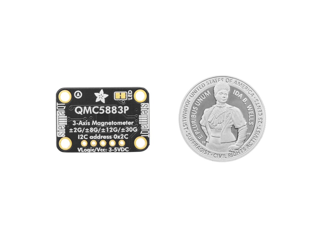 To make life easier so you can focus on your important work, we've taken the QMC5883P and put it onto a breakout PCB along with support circuitry to let you use this little wonder with 3.3V (Feather/Raspberry Pi) or 5V (Arduino/ Metro328) logic levels. Additionally, since it speaks I2C you can easily connect it up with two wires (plus power and ground!). We've even included SparkFun qwiic compatible STEMMA QT connectors for the I2C bus so you don't even need to solder! Just wire up to your favorite micro and you can use our CircuitPython/Python or Arduino drivers to easily interface with the QMC5883P and get magnetic measurements ASAP. QT Cable is not included, but we have a variety in the shop.