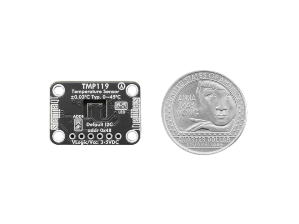 The TMP119 High-Precision Temperature Sensor is an I2C temperature sensor that will help you easily add super-precise temperature measurement and adjustment to your project. In addition to the obvious support for reading the temperature, the TMP119 can also monitor the temperature and alert you when corrective action needs to be taken.