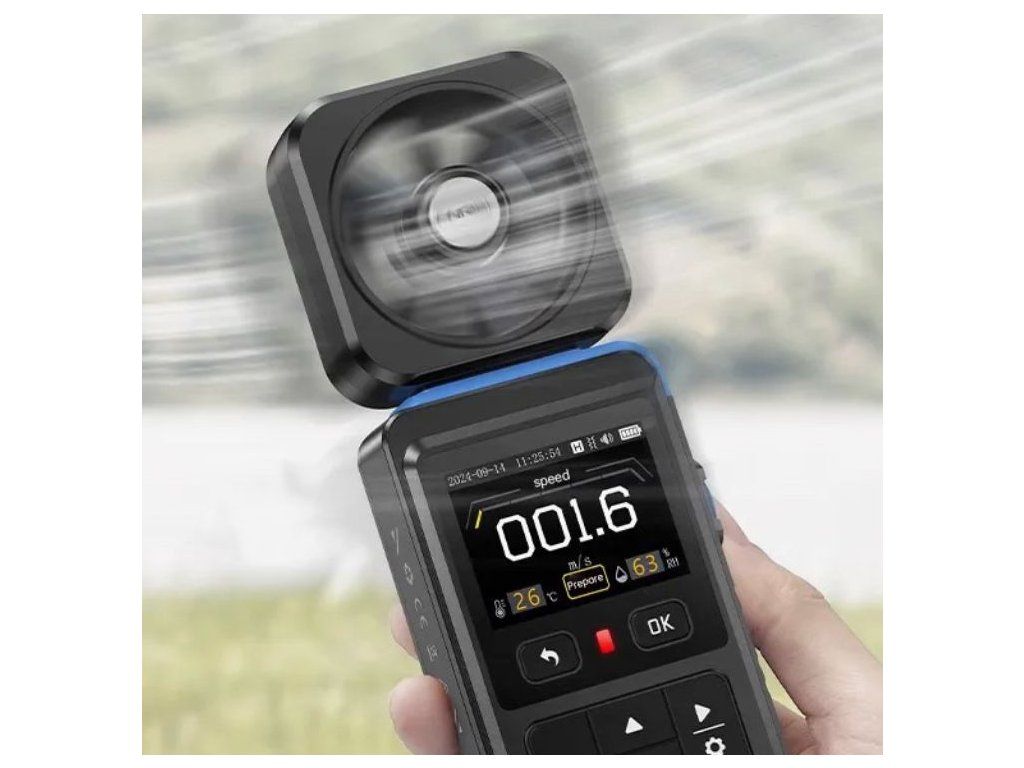 Tento model využíva veternú turbínu, ktorá okamžite reaguje aj na mierne poryvy vetra, zatiaľ čo digitálny displej LCD zobrazuje aktuálnu rýchlosť vetra, teplotu a relatívnu vlhkosť – všetko naraz. Zariadenie váži len približne 199 g a jeho rozmery (približne193 × 63 × 28 mm) sú ideálne do vrecka alebo batohu.