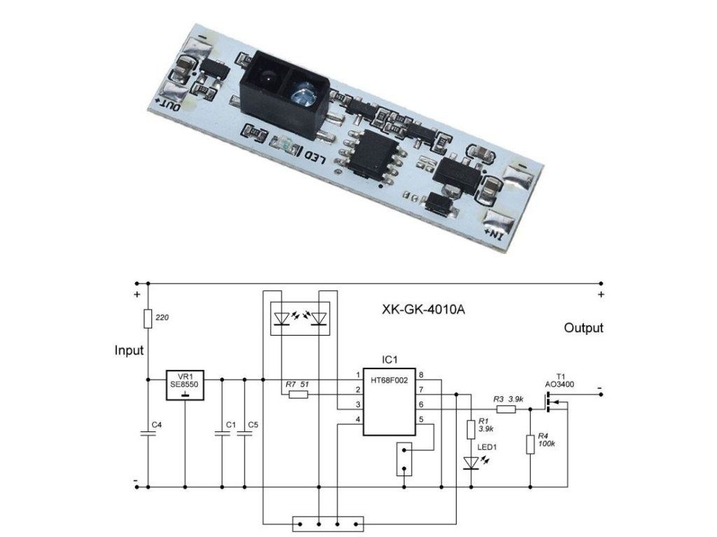 Pri dlhšom podržaní ruky pred svetelnou závorou sa aktivuje stmievač (12-6V)