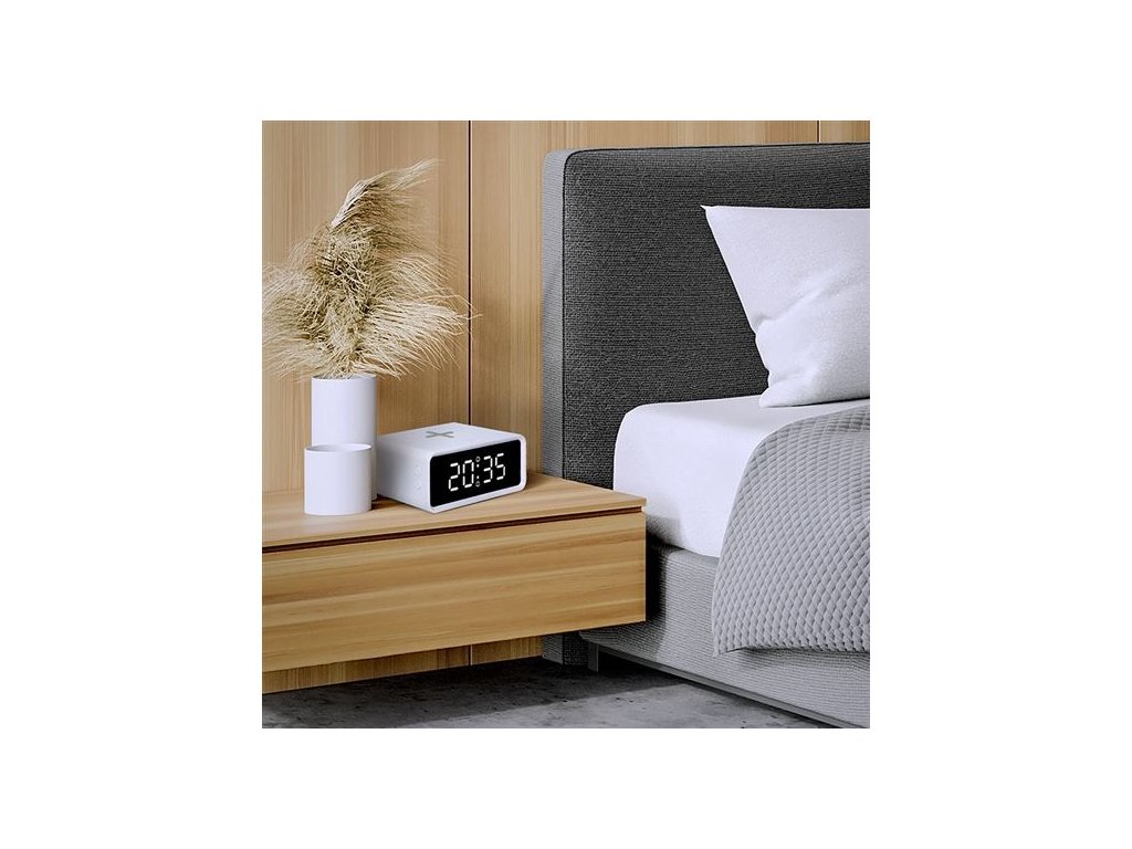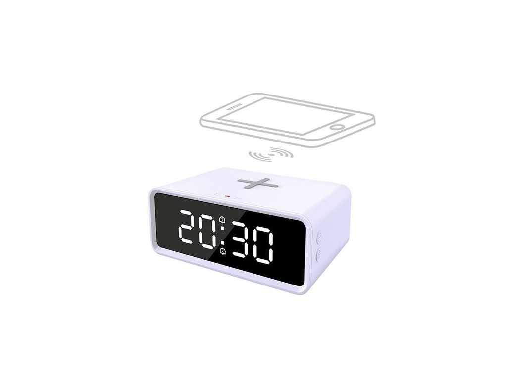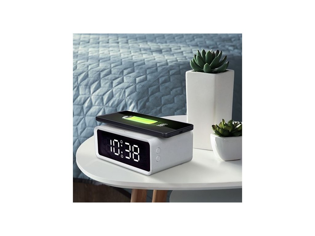 Digitálne hodiny s Qi bezdrôtovú nabíjačkou biele