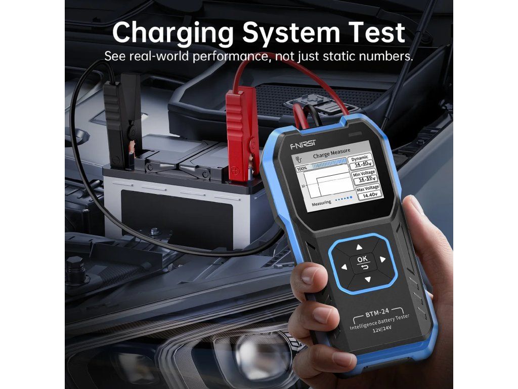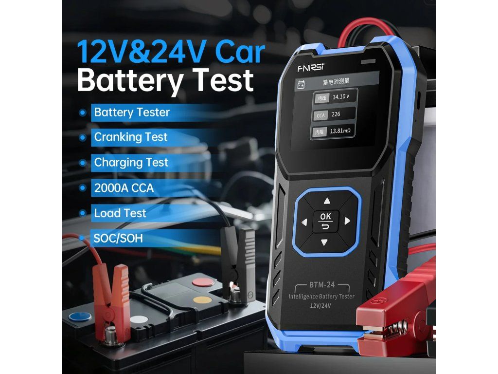 Tester batérií FNIRSI BTM-24 je kompaktný, profesionálny nástroj na rýchle a presné kontroly stavu batérií. Meria napätie, vnútorný odpor, CCA, štartovací výkon, odozvu na záťaž a stav nabíjacieho systému – to všetko v priebehu niekoľkých sekúnd. Vďaka podpore 12V/24V olovených, AGM a lítiových batérií so šiestimi medzinárodnými normami (CCA, IEC, EN, DIN, JIS, GB) je ideálny pre automobilové, priemyselné a telekomunikačné použitie. 2,4-palcový farebný displej poskytuje jasné výsledky v reálnom čase – žiadne dohady, len spoľahlivá diagnostika.