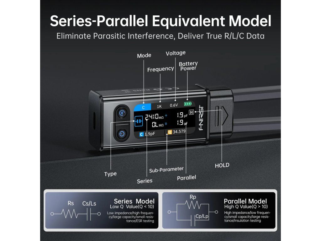 ◉ Ekvivalentný sériový/paralelný režim pre presné údaje R/L/C
