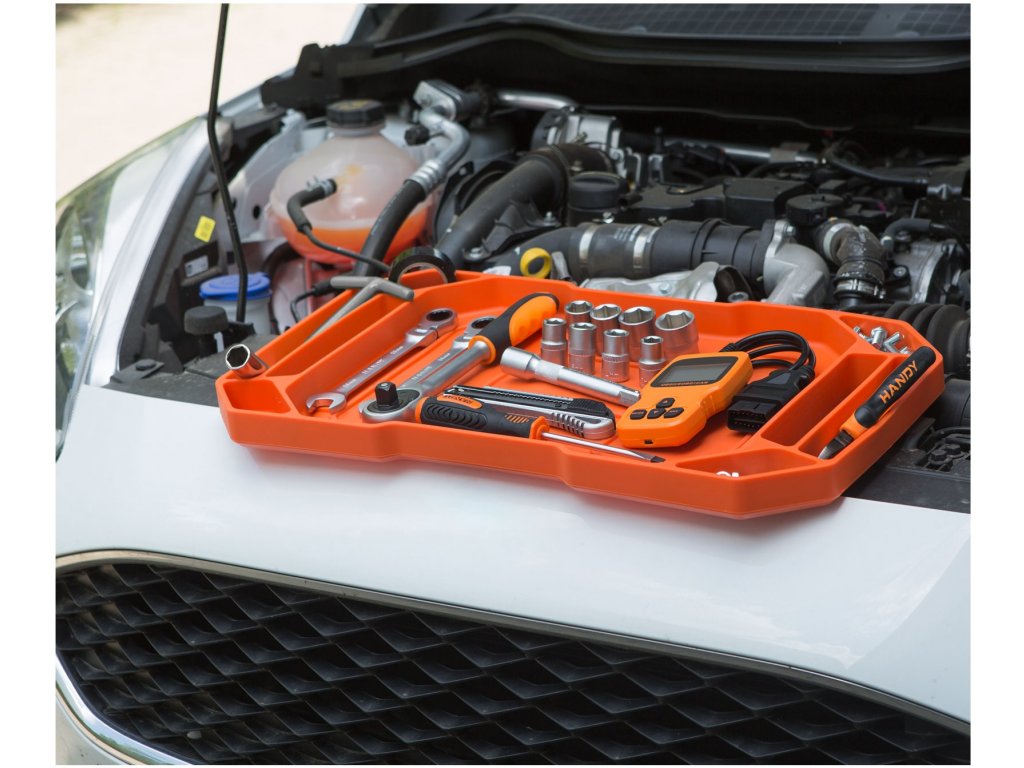 Gumená tácka na náradie s úložnými priehradkami - s uchom - 53 x 29,5 x 3,5 cm
