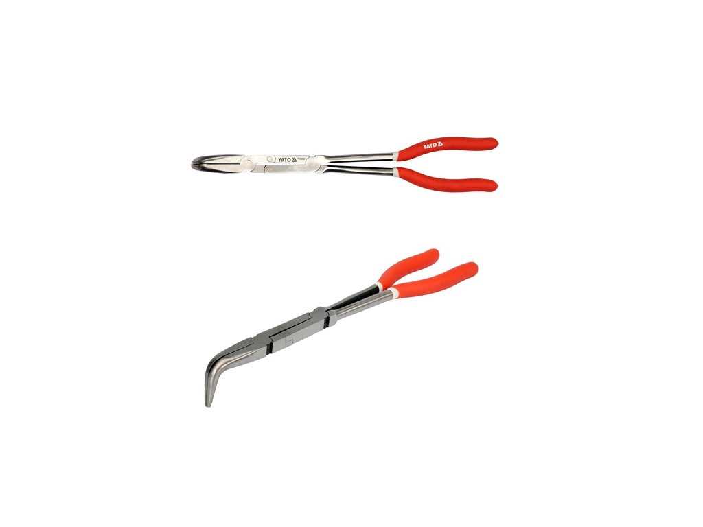 Kliešte predĺžené so zahnutou čeľusťou do uhla 90° určené predovšetkým na presnú prácu na ťažko prístupných miestach av úzkych priestoroch.