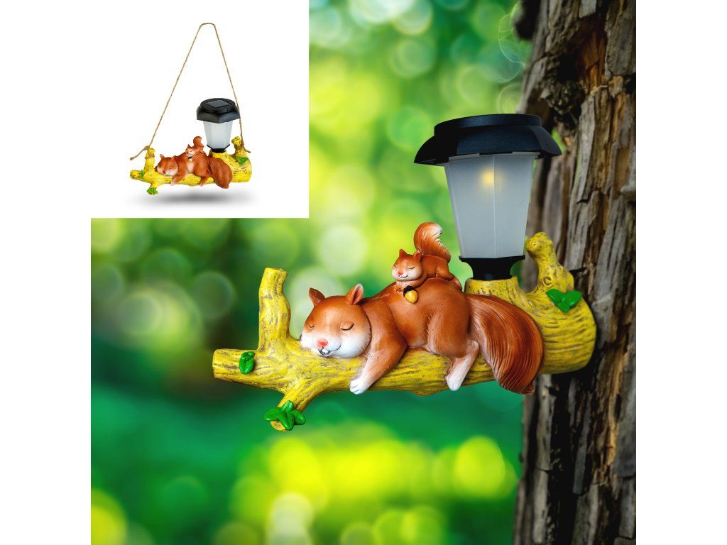 LED solárna zvieracia figúrka – veverička – na zavesenie – teplá biela LED – 25 x 6 x 19 cm