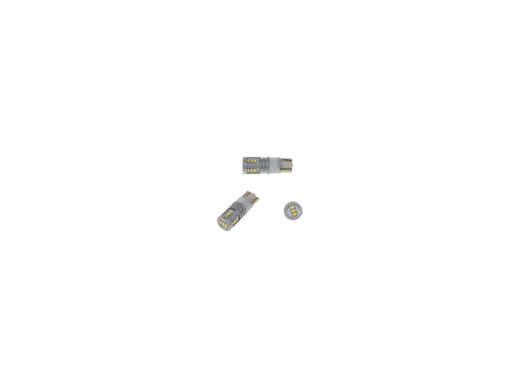 Náhradná LED žiarovka s päticou T10, biela, 15x vysokosvietivé SMD LED diódy 1W, vhodná do parkovacích svetiel u starších vozidiel. Svietivosť LED diódy je väčšia u žiarovky 12 V 5 W. Vďaka teplote svetla 6000 K sú LED žiarovky ideálnym doplnkom do reflektorov s xenónovými výbojkami, kde žlté svetlo obyčajnej žiarovky pôsobí rušivo.Nehlási závady riadiacej jednotky na žiarovke u nových vozidiel so systémom kontroly praská žiarovky. Napr. u VW, Audi, Škoda, Seat, BMW, Volvo, Mercedes, Porsche, Mini (nemusí fungovať vo všetkých modeloch).Technické parametre• pätica T10• farba biela• 15x vysokosvietivé SMD LED diódy 1W• veľmi dlhá životnosť• odolné otrasom, častému zapínanie a vypínanie• napájacie napätie 9 - 40 V• teplota svetla: 6000 K• odber prúdu 260 mA / 12V• rozmer žiarovky: o 10mm, dĺžka 31 mm• cena je uvedená za 1ks nie pár, balenie 2 ks (pár)Vlastnosti• vynikajúca do vozidiel, kde dochádza k častému praskaniu klasických žiaroviek• pre všetky osobné vozidlá, dodávky a motocykle s napätím 12/24 V• vysoká svietivosť