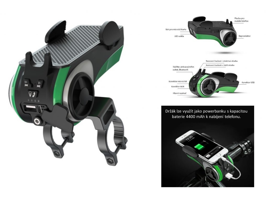 Multifunkčný držiak telefónu na bicykel so zvukovým systémom