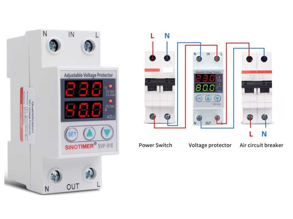 Napäťová a prúdová ochrana Sinotimer SVP-916 40A na DIN lištu