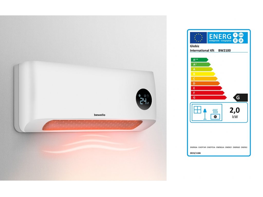 Nástenný ohrievač - 1000/2000W - LED displej - 230V - biela