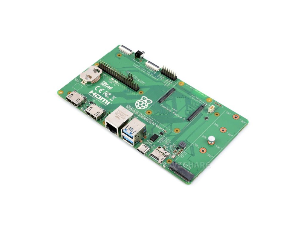 IO doska Compute Module 5 je doplnková doska pre Raspberry Pi Compute Module 5 (dodávaná samostatne). Je navrhnutý pre použitie ako vývojový systém pre Compute Module 5, tak aj ako vstavaná doska integrovaná do koncových produktov.