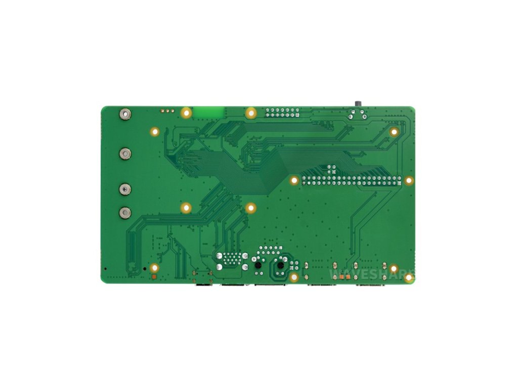 IO doska je navrhnutá tak, aby vám umožnila rýchlo vytvárať systémy pomocou bežných dielov, ako sú moduly HAT a PCIe. Hlavné užívateľské konektory sú umiestnené pozdĺž jednej strany, aby boli kryty jednoduché.