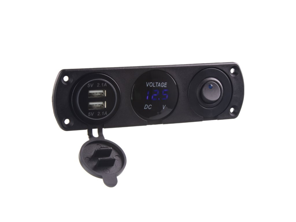 Panel s 1 spínačom, 2x USB zásuvka a samostatný voltmeter.