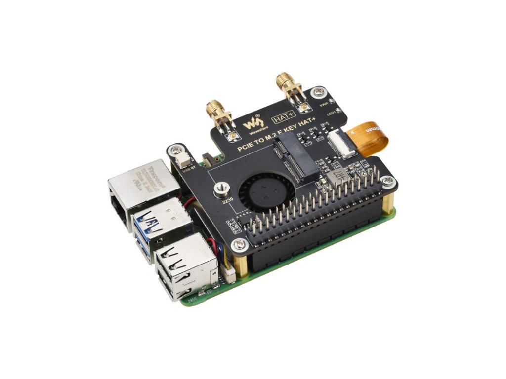 PCIe To M.2 E KEY HAT for Raspberry Pi 5, Compatible With NGFF (M.2 E Key) Wireless NIC, Supports USB Bluetooth Connection, HAT+ Standart, Raspberry Pi 5 PCIe HAT