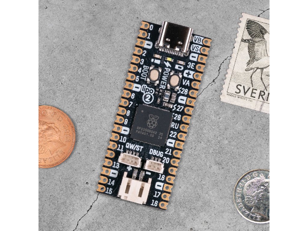 Pimoroni Pico LiPo 2 je napájaný a programovateľný cez USB-C a dodáva sa s vylepšenou 8 MB RAM , 16 MB flash pamäťou a ľahko čitateľnými označeniami pinov . Má integrovanú správu LiPo/LiIon batérií - vstavaný nabíjací obvod znamená, že nabíjanie batérie je rovnako jednoduché ako pripojenie dosky cez USB. K obvodu batérie sú pripojené dve indikačné LED diódy, ktoré vás informujú o stave zapnutia/vypnutia a stave nabíjania, a je kompatibilný s akoukoľvek z našich LiPo , LiIon a vysokokapacitných LiPo batérií. K dispozícii je tiež praktické tlačidlo napájania a tlačidlo BOOT, ktoré možno použiť aj ako používateľský prepínač.