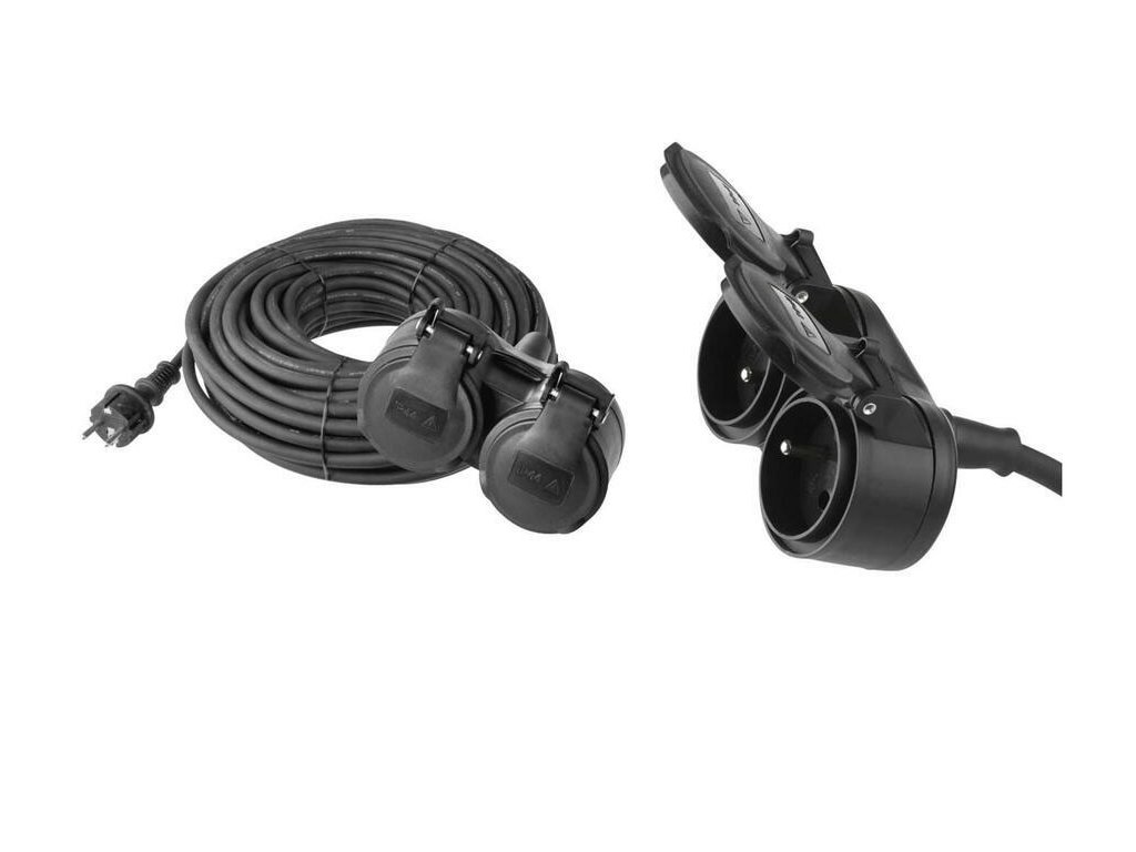 Predlžovací kábel gumový – 2 zásuvky, 20m, 3× 1,5mm2, IP44