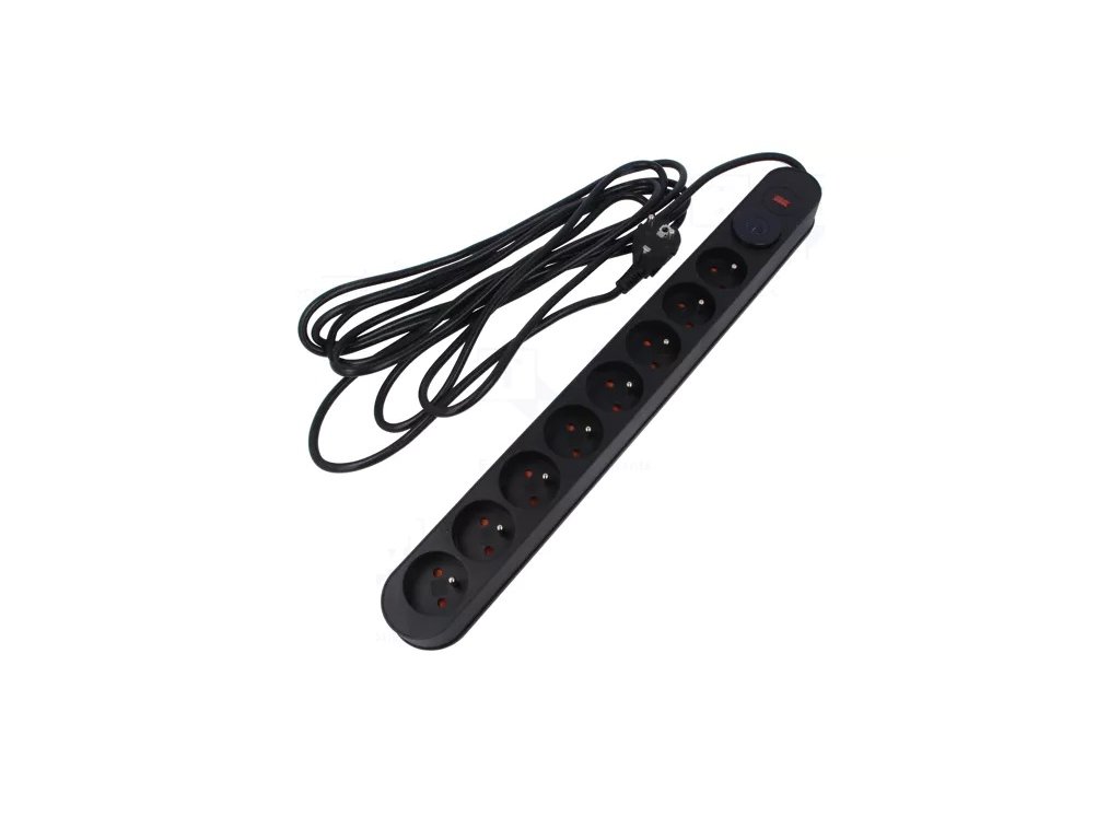 Predlžovací prívod: ochranný; Zásuvky: 8; 230VAC; 10A; čierna; 1,5m