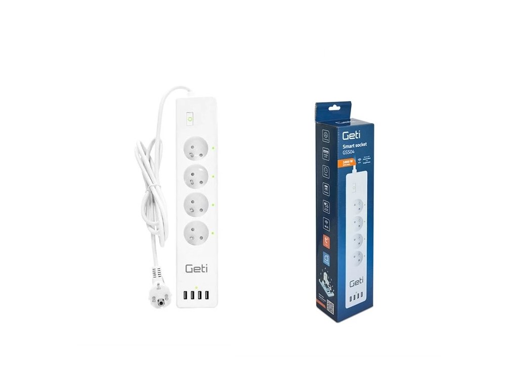 Predlžovací prívod Smart GETI GSS04, 4 zásuvky, 4x USB, Tuya