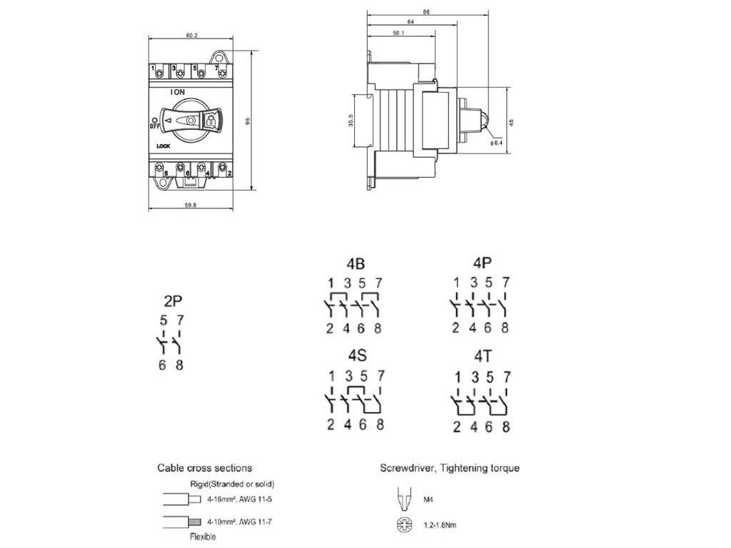 Prepínač DC 4P 32A 300-1000V YRDS1DB/N32/4