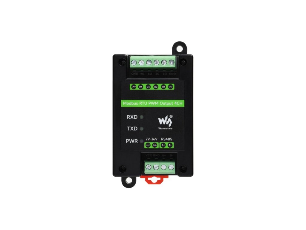 Modbus RTU PWM Output 4CH je izolovaný výstupný modul RS485 na PWM, ktorý podporuje 4-kanálové PWM výstupy s nastaviteľnou frekvenciou a pracovným cyklom. Používa protokol Modbus RTU so vstavanými ochrannými obvodmi, ako je izolácia napájania, magnetická izolácia, resetovateľná poistka a TVS.