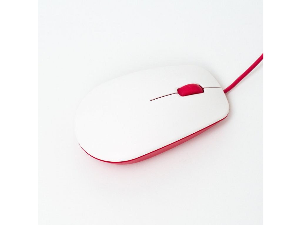 Šikovná malá 3 tlačidlová USB myš v malinovo červenej a bielej farbe. Môžete ju pripojiť do jedného z vstavaných USB portov Raspberry Pi klávesnice, a uvoľniť si tak jeden USB port na vašom Pi.