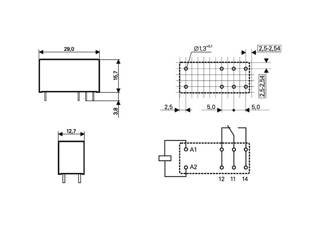 Relé RT314012 elektromagnetické, SPDT, Ucievky 12VDC, Ikontakt max:16A