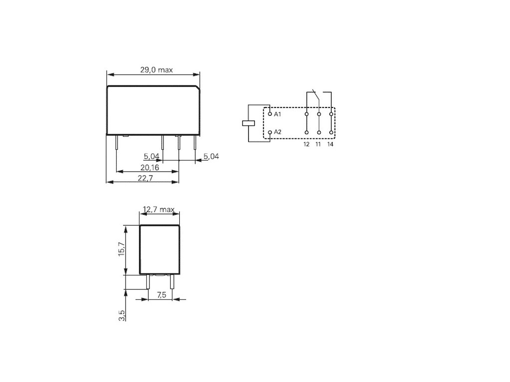 Relé RZ03-1C4-D012 elektromagnetické, SPDT, Ucievky: 12VDC, 16A/250VAC
