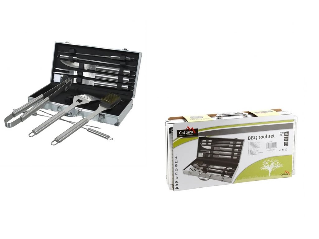 V sade sa nachádza obracačka s precízne zabrúsenou hranou vybavená zúbkovaným ostrím, otváračom zátok a otvormi na odtok. Kliešte, špeciálne tvarované pre istý úchop najrôznejších pokrmov, kefu na údržbu grilu, kedy samotná kefová časť je z mosadze. Nepostrádateľnou časťou grilovacieho náradia je aj dvojzubá vidlička, štetec so štetinami z nylonu, na potieranie, či mašlovanie pokrmov, porciovací nôž a 4× grilovacie ihlice s hrotmi brúsenými do špičky.