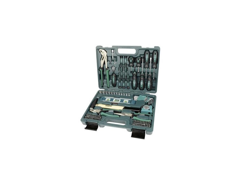 Náradie je vyrobené zo špeciálnej ocele alebo chróm-vanádiovej ocele, väčšinovo testované podľa zásad certifikácie GS. Pre všetky remeselné práce v dome a na záhrade. Náradie bezpečne a prehľadne uložené v kufri.technické parametreTyp sady náradí (kategória) Sada náradiaOblasť použitia Pre údržbáraVonkajšia dĺžka 382 mmVonkajšia výška 90 mmVonkajšia šírka 290 mmHmotnosť 3.8 kgrozsah dodávky5x skrutkovač pre jemnú mechaniku6x skrutkovač, čepele z CV ocelerukoväť skrutkovača12x nástavec pre nástrčné kľúče, CV oceľ, SW 4 / 4,5 / 5 / 5,5 / 6/7/8/9/10/11/12 mm9x kľúč s T-profilom, CV oceľ, T10 / T15 / T20 / T25 / T27 / T30 / T40 / T45 / T50Prepínací račňa 6,3 mm (1/4 ")Zámočnícke kladivo 200 gKombinované kliešte 180 mmTelefónne kliešte 200 mmSika kliešte 250 mmPredĺženie 6,3 mm (1/4 ") x 50 mmAdaptér nástrčného kľúča 6,3 mm (1/4 ") x 25 mmMeracie pásmo 3 mvodováha Torpedo44 bitov