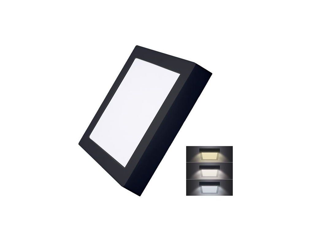 Solight LED mini panel CCT, prisadený, 12W, 900lm, 3000K, 4000K, 6000K, štvorcový, čierna farba