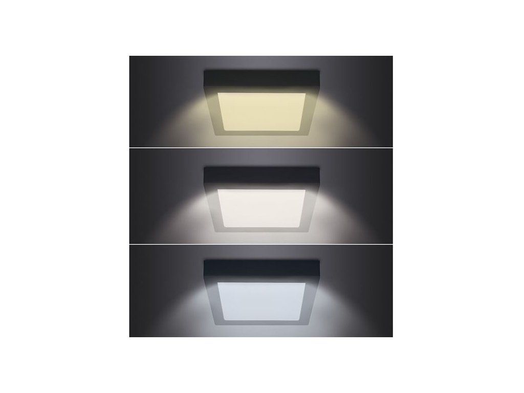 Solight LED mini panel CCT, prisazený, 18W, 1530lm, 3000K, 4000K, 6000K, štvorcový, čierna farba