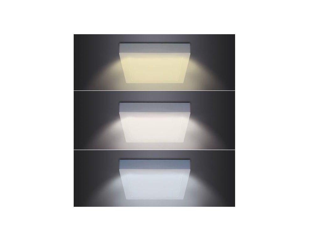 Výkonný 18W štvorcový panel LED je ideálny pre priestranné interiéry, kde je potrebné rovnomerné a intenzívne osvetlenie. Pomocou prepínača môžete jednoducho nastaviť teplotu svetla - teplú (3000 K), neutrálnu (4000 K) alebo studenú bielu (6000 K). Vďaka svetelnému toku 1530 lm a uhlu osvetlenia 160° panel dokonale osvetlí aj väčšie miestnosti.