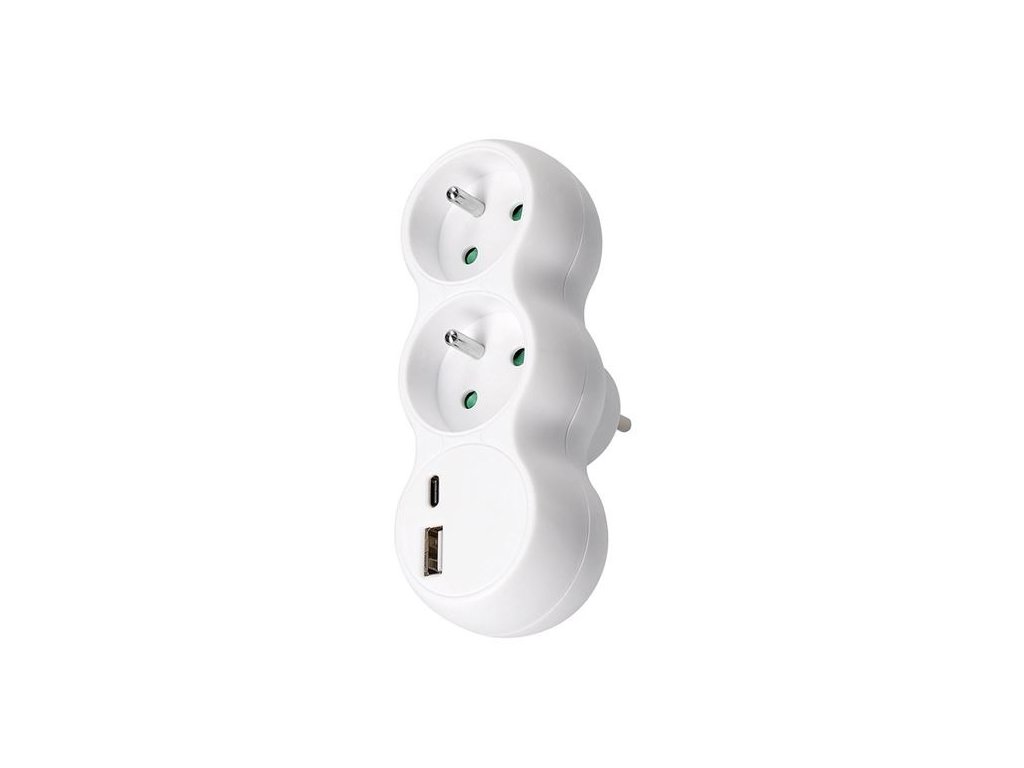 Solight rozbočovač s USB A+C nabíjačkou, 2 x 10A, biely