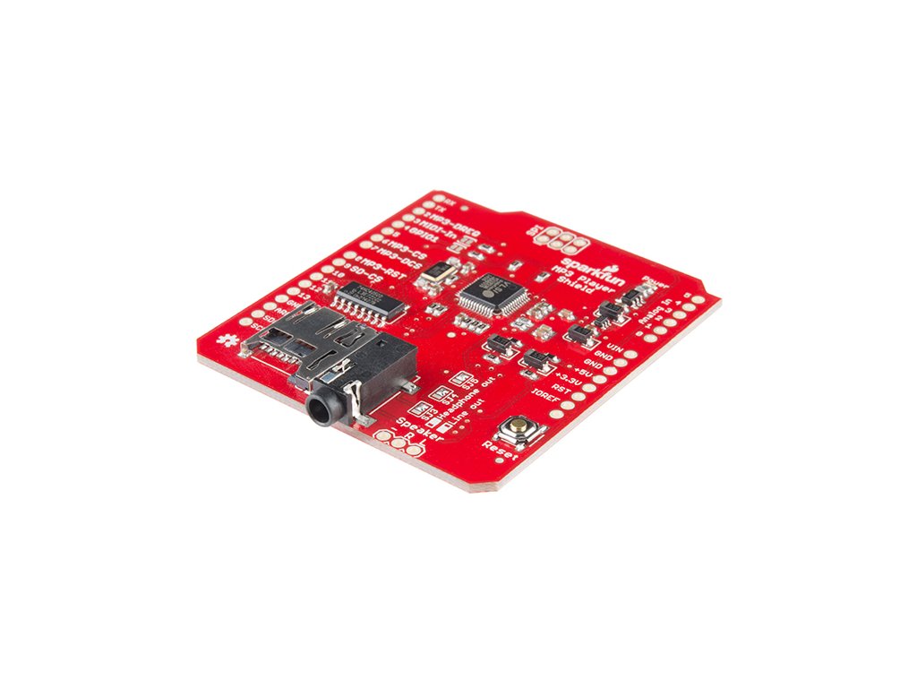 SparkFun MP3 Player Shield je úžasný MP3 dekodér s možnosťou ukladania hudobných súborov na bežnú microSD kartu, čo vám dáva možnosť pridať hudbu alebo zvukové efekty do akéhokoľvek projektu. S touto doskou môžete vytiahnuť MP3 súbory z microSD karty a prehrať ich iba pomocou jedného štítu, čím efektívne premeníte akékoľvek Arduino na plne funkčný samostatný MP3 prehrávač! MP3 Shield využíva VS1053B MP3 audio dekodér IC na dekódovanie audio súborov. VS1053 je tiež schopný dekódovať zvuk Ogg Vorbis/MP3/AAC/WMA/MIDI a kódovať IMA ADPCM a Ogg Vorbis načítateľný používateľom.