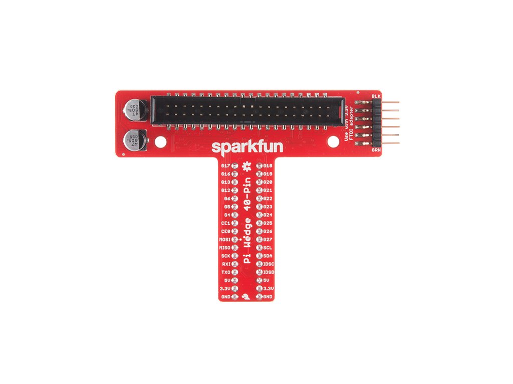 Pi Wedge je kompatibilný s modelmi Raspberry Pi A+, B+ alebo RPi2 a prispôsobuje hlavičku GPIO na RPi štandardnej nepájkovej doske, ako sú naše stredné, veľké a extra veľké dosky. Aj keď sa technicky zmestí s mini nepájive pole, nenechá veľa miesta pre externé obvody. Ak máte radi Raspberry Pi a chceli ste s ním začať prototypovať, nehľadajte nič iné ako SparkFun Pi Wedge!