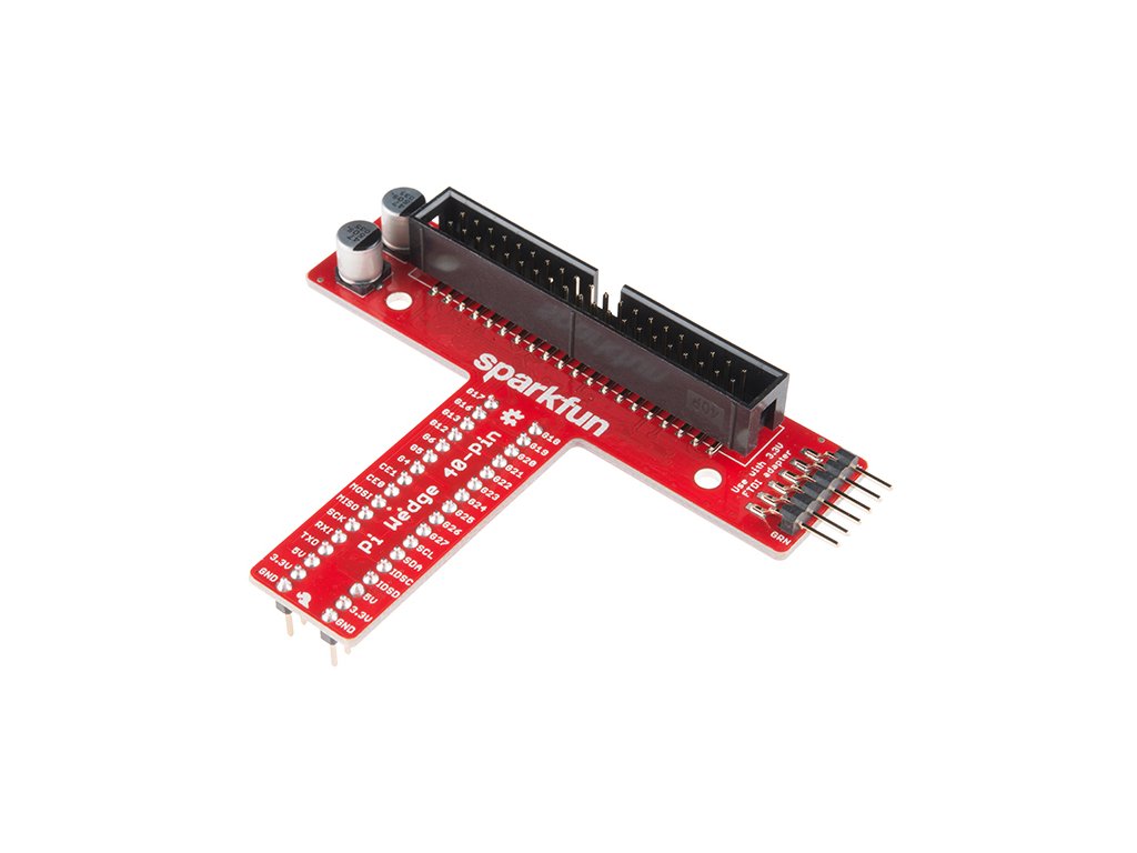 Toto je SparkFun Pi Wedge, malá doska, ktorá sa pripája k 40-kolíkovému konektoru GPIO na Raspberry Pi a rozdeľuje kolíky do usporiadania a rozstupov, ktoré sú vhodné pre kontaktnú dosku, a dokonca pridáva pár oddeľovacích kondenzátorov na napájacie vedenia. . "Wedge" tiež uľahčuje počiatočný proces - do vstavaného sériového portu môžete zapojiť modul FTDI Basic. Každá verzia tohto Pi Wedge sa dodáva vopred zmontovaná a dá sa vložiť do GPIO portu RPi, ktorý vám umožní vytvoriť prototyp – nie je potrebné žiadne spájkovanie!