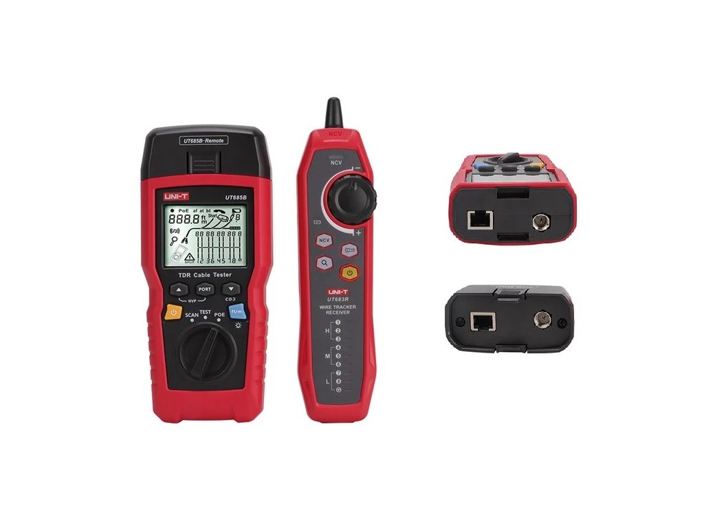 Tester kábla UT683B KIT je ručný tester káblov TDR, vhodné pre medené káble (CAT 5E, CAT 6, CAT 6A alebo CAT 8), ktorý sa používa na detekciu a diagnostiku stavu zapojenia krútených párov a koaxiálnych káblov, detekciu sieťových služieb, skratov/otvorených obvodov v sieťovej kabeláži, rozdelenie páru, chybného zapojenia atď. Možno ho tiež použiť na zistenie, či je v sieťovej kabeláži prívod PoE (modul POE), a štandardu PoE (802.3AF, 802.3AT, 802.3BT). Na obrazovke je možné súčasne zobraziť mapu vodičov, dĺžku kábla, miesto prerušeného obvodu a ďalšie informácie. Tester káblov sa vyznačuje presnosťou, jednoduchou obsluhou, viditeľným zobrazením, čo z neho robí ideálny nástroj pre údržbu sieťovej komunikácie,