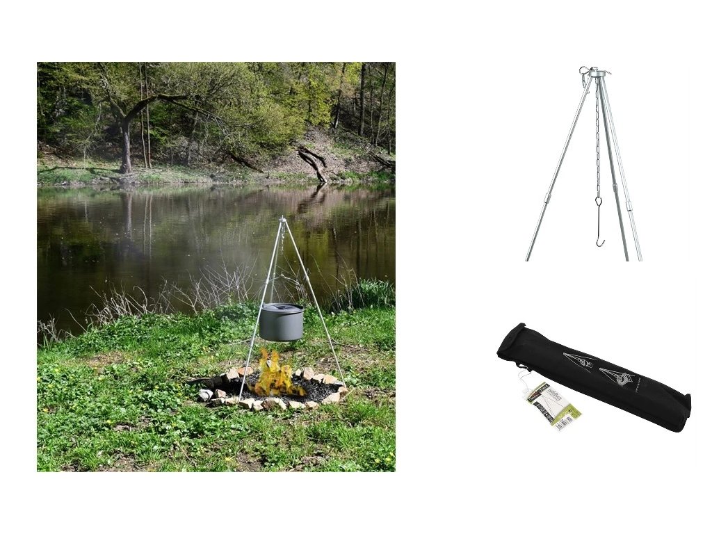 Praktický skládací tripod je výtečným doplňkem pro plynový vařič, ale i ohniště.