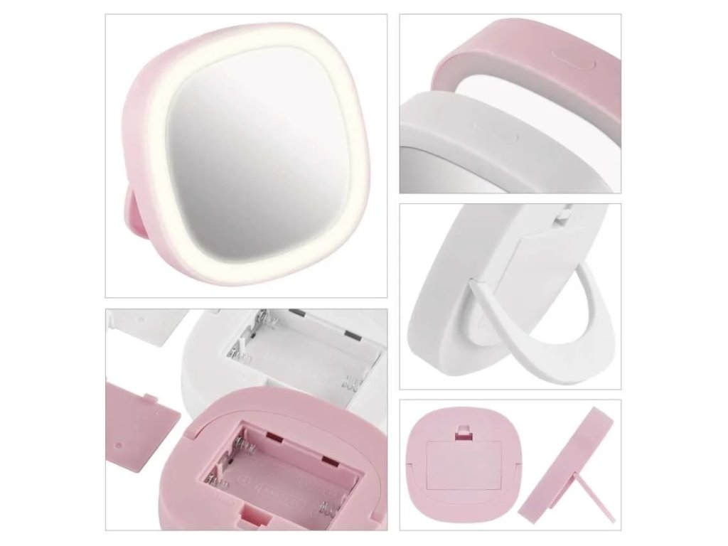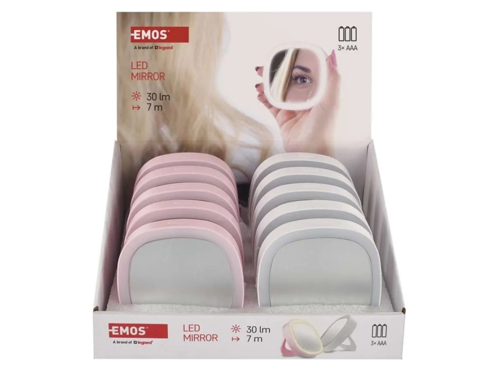 Vreckové kozmetické zrkadlo s LED svetlom, 10 ks, display box