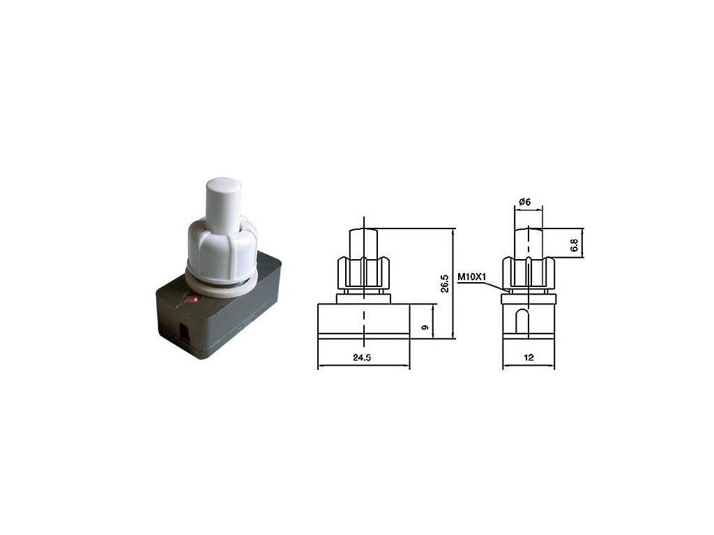 Vypínač stláčací PBS-17A-2, ON-OFF 250V/2A