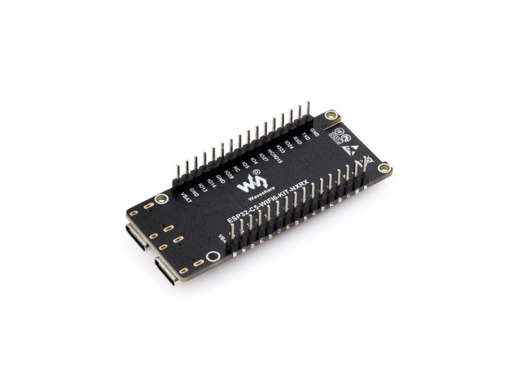 ESP32 -C5-WIFI6-KIT je vývojová doska navrhnutá spoločnosťou Waveshare na základe modulu ESP32-C5-WROOM-1 pre dvojpásmové Wi-Fi a multiprotokolové IoT brány. ESP32-C5 je jednojadrový čip RISC-V, ktorý podporuje dvojpásmové Wi-Fi 6 (2,4 GHz a 5 GHz) a integruje protokoly BLE 5, Zigbee a Thread pre flexibilné použitie ako rozbočovač inteligentnej domácnosti alebo multiprotokolová komunikačná brána.