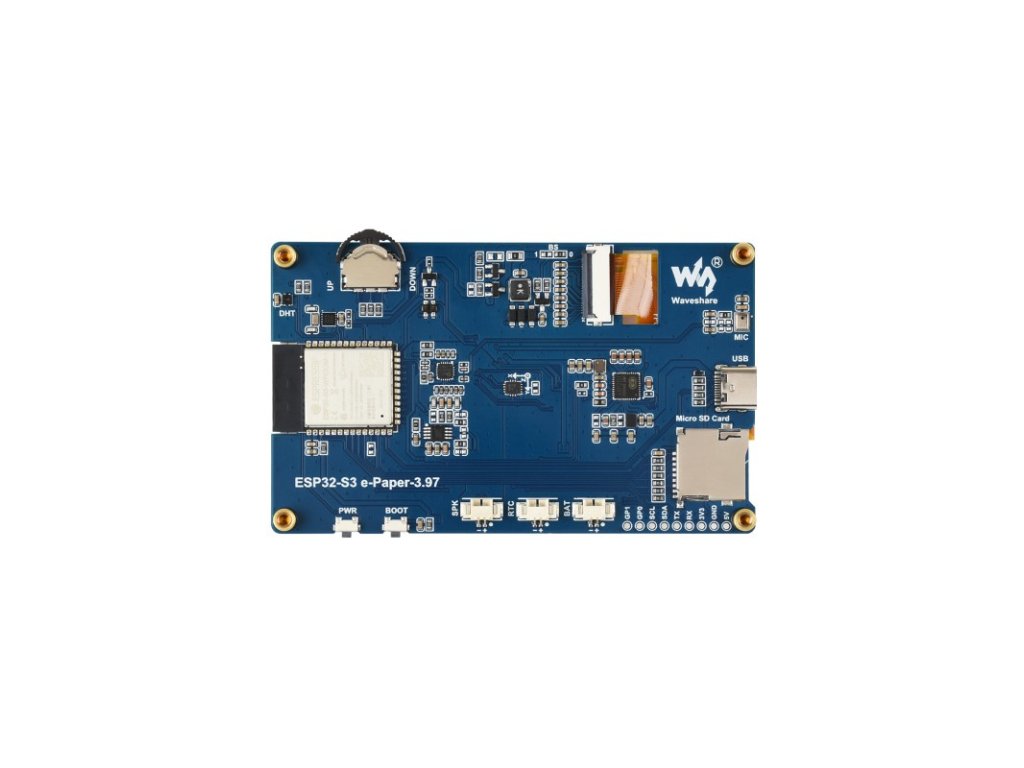ESP32 -S3-ePaper-3.97 je vysoko výkonná, vysoko integrovaná vývojová doska s mikrokontrolérom navrhnutá spoločnosťou Waveshare. Je vybavená mikrokontrolérom ESP32-S3 a podporuje duálnu komunikáciu Wi-Fi a BLE. Integrovaný 3,97-palcový displej elektronického papiera sa vyznačuje ultra nízkou spotrebou energie a dobrou čitateľnosťou aj pri okolitom osvetlení, je vhodný pre prenosné zariadenia a scenáre s dlhou výdržou batérie. Je integrovaný s čipom RTC, snímačom teploty a vlhkosti SHTC3, slotom pre kartu TF, nízkoenergetickým audio kodekom a obvodom riadenia nabíjania lítiovej batérie. Poskytuje flexibilnú a spoľahlivú vývojovú platformu pre terminály IoT, elektronické štítky, prenosné displeje a ďalšie aplikácie.