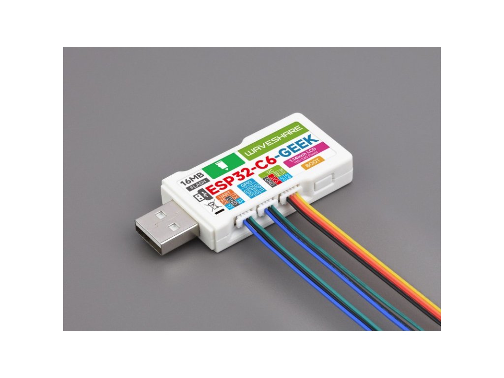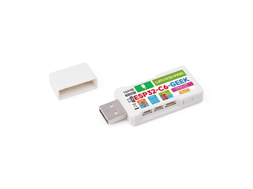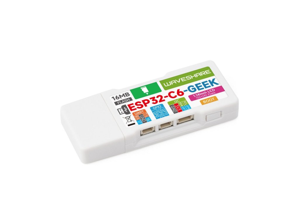 ESP32 -C6-GEEK je vývojová doska pre geekov navrhnutá spoločnosťou Waveshare, s integrovaným portom USB-A samec, 1,14-palcovým LCD displejom, slotom pre TF kartu a ďalšími perifériami. Podporuje 2,4 GHz Wi-Fi 6 a BLE 5, s integrovanou 16 MB Flash pamäťou, poskytuje I2C konektor, UART konektor a GPIO konektor, čím prináša viac možností pre váš projekt.