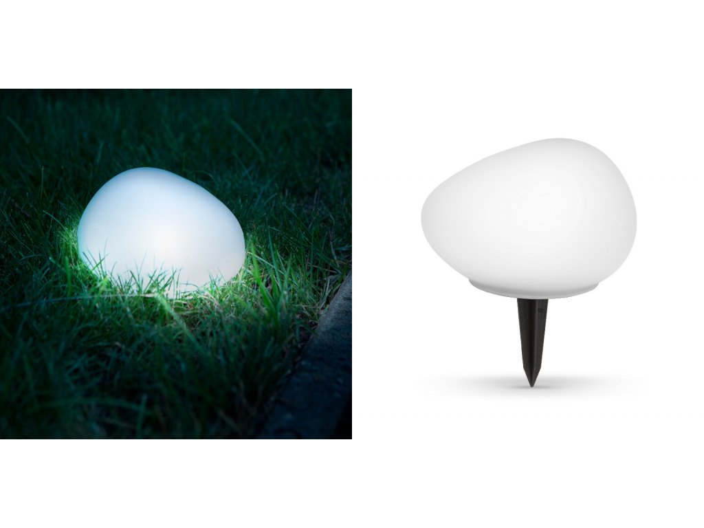 Zapichovacia solárna lampa - tvar kameňa - matné sklo - 165 x 142 x 115 mm - teplá biela LED
