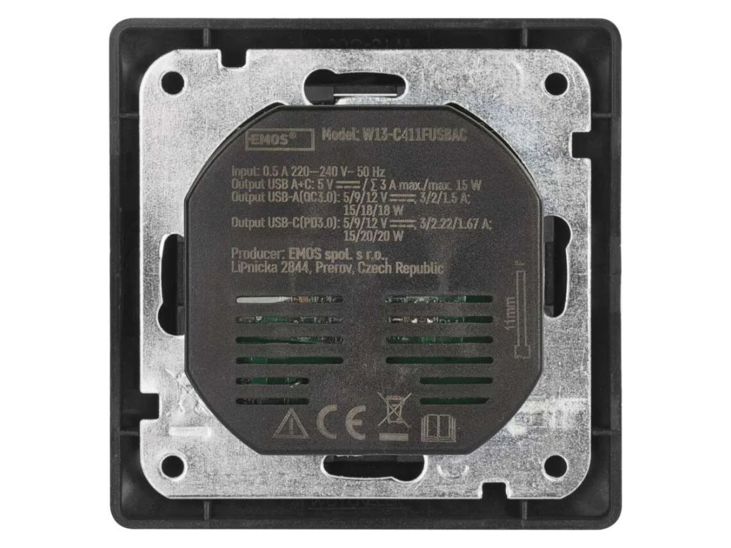 | produkt | jedna zásuvka s ochranným kolíkom a výstupom USB 3 A max. |